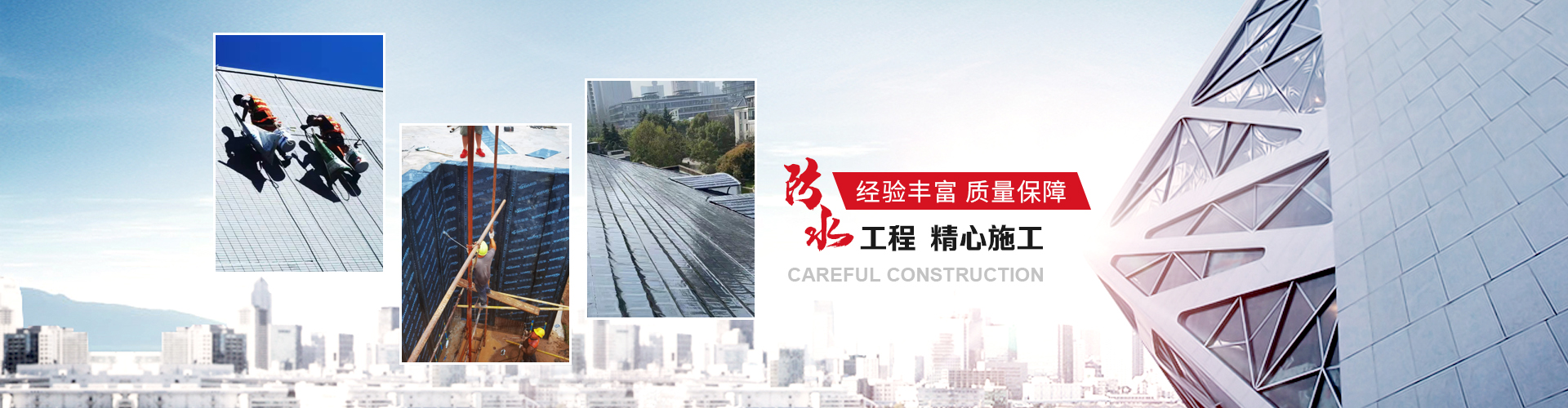 上海雨飛鳴防水工程有限公司集外墻防水、樓頂防水、地下室堵漏、廠房防水工程施工等。主要承接各類防水堵漏工程、各種大型建筑屋面廠房、地下室、地鐵、隧道、涵洞、礦井堵漏、電梯井、止水帶、沉降縫、彩鋼板屋面、堵漏防水有成功處理經驗,建筑外墻保溫及舊墻面改造翻新施工,施工業績遍布全國各地。